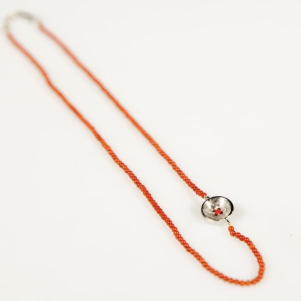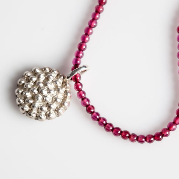Halsjuweel met zilveren hanger en granaatbolletjes, juwelen op maat, Antwerpen